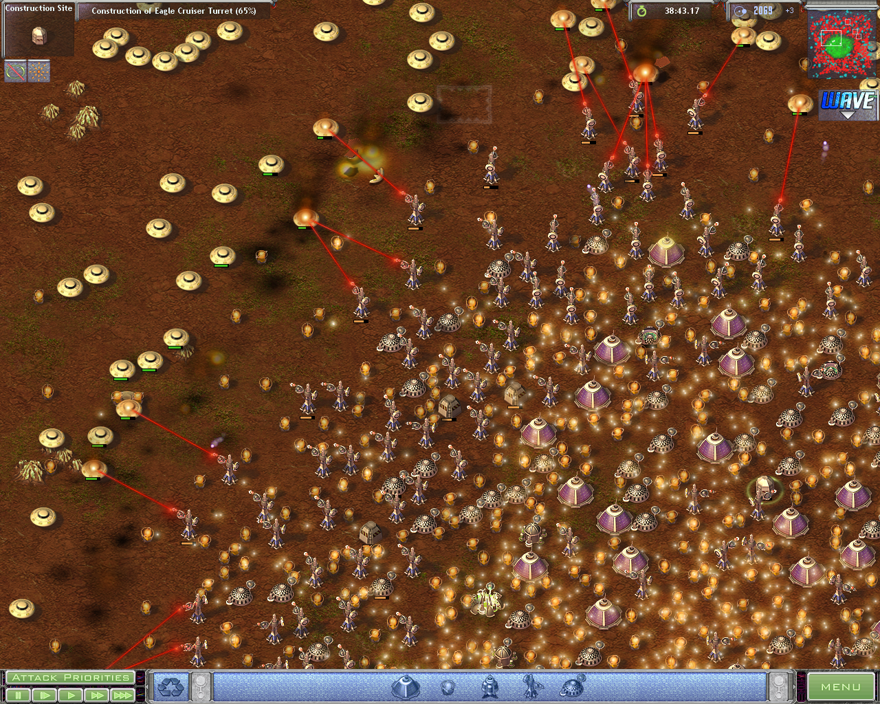 Truly epic! But lets start at the beginning. The game starts with a small base with two power plants and some power links. Yep, everything needs energy, so the player will build power plants and links most of the time. The mining is very important, cause it’s the only way to obtain money. And depending on the mode the player will need to build its defense structures - lasers and missile turrets. The lasers are really cool – you can link them to obtain a high-power beam.